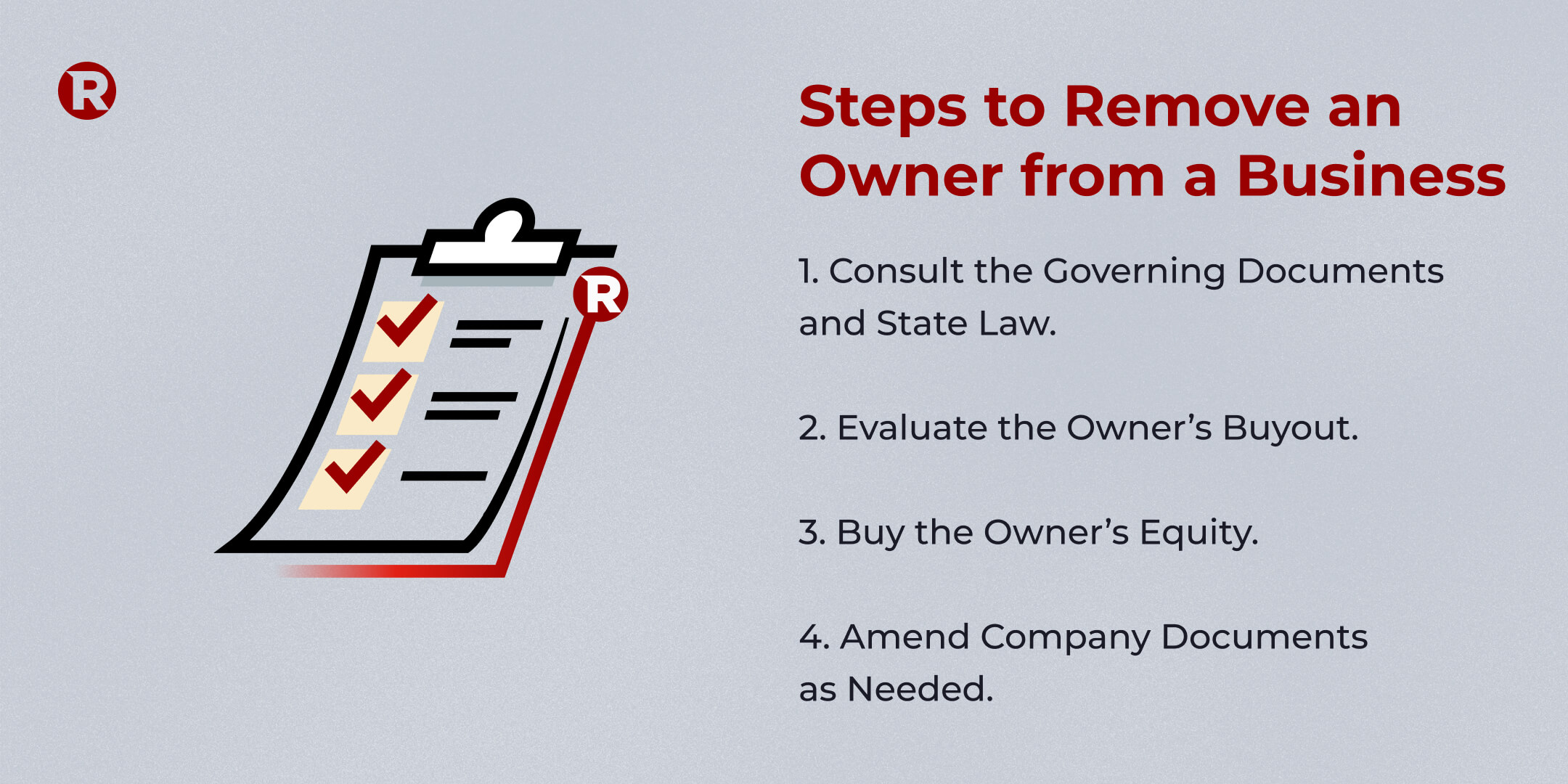 After the removal is approved, the departing owner may expect payment. The business might buy their equity, or the other owners might buy the departing owner out directly.