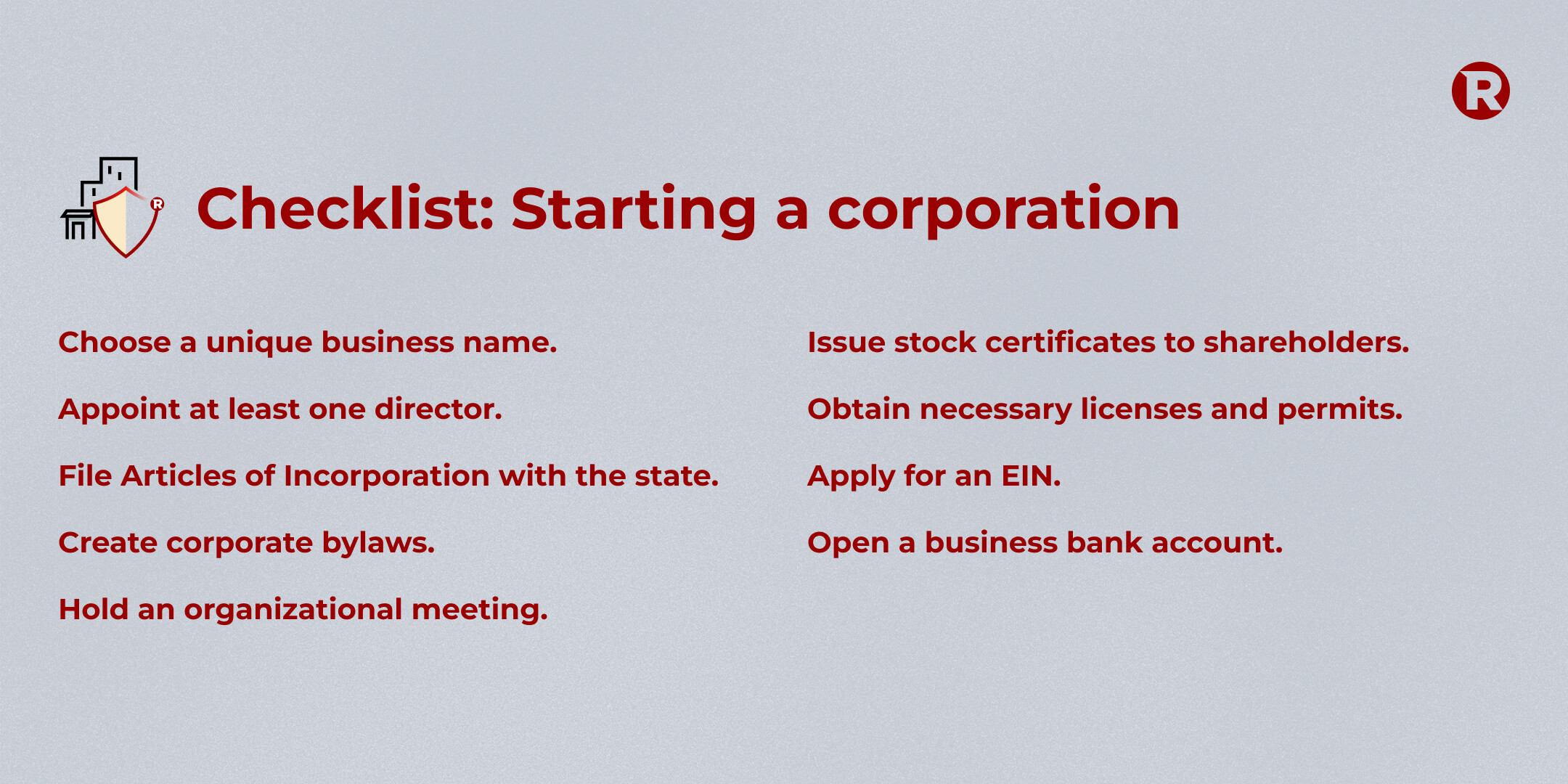 Checklist for starting a corporation