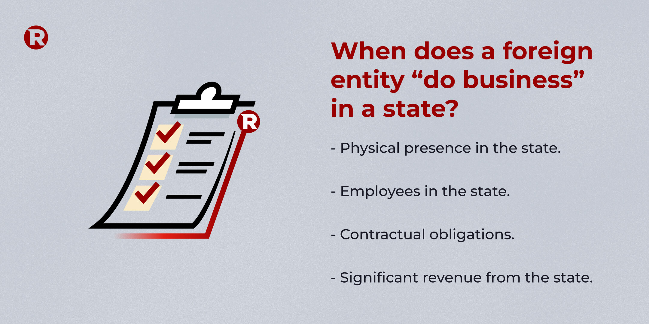 Having a significant number of contractual obligations in a state may count as “doing business” for foreign registration purposes. This can be subjective, but certain factors increase the likelihood that registration is required: