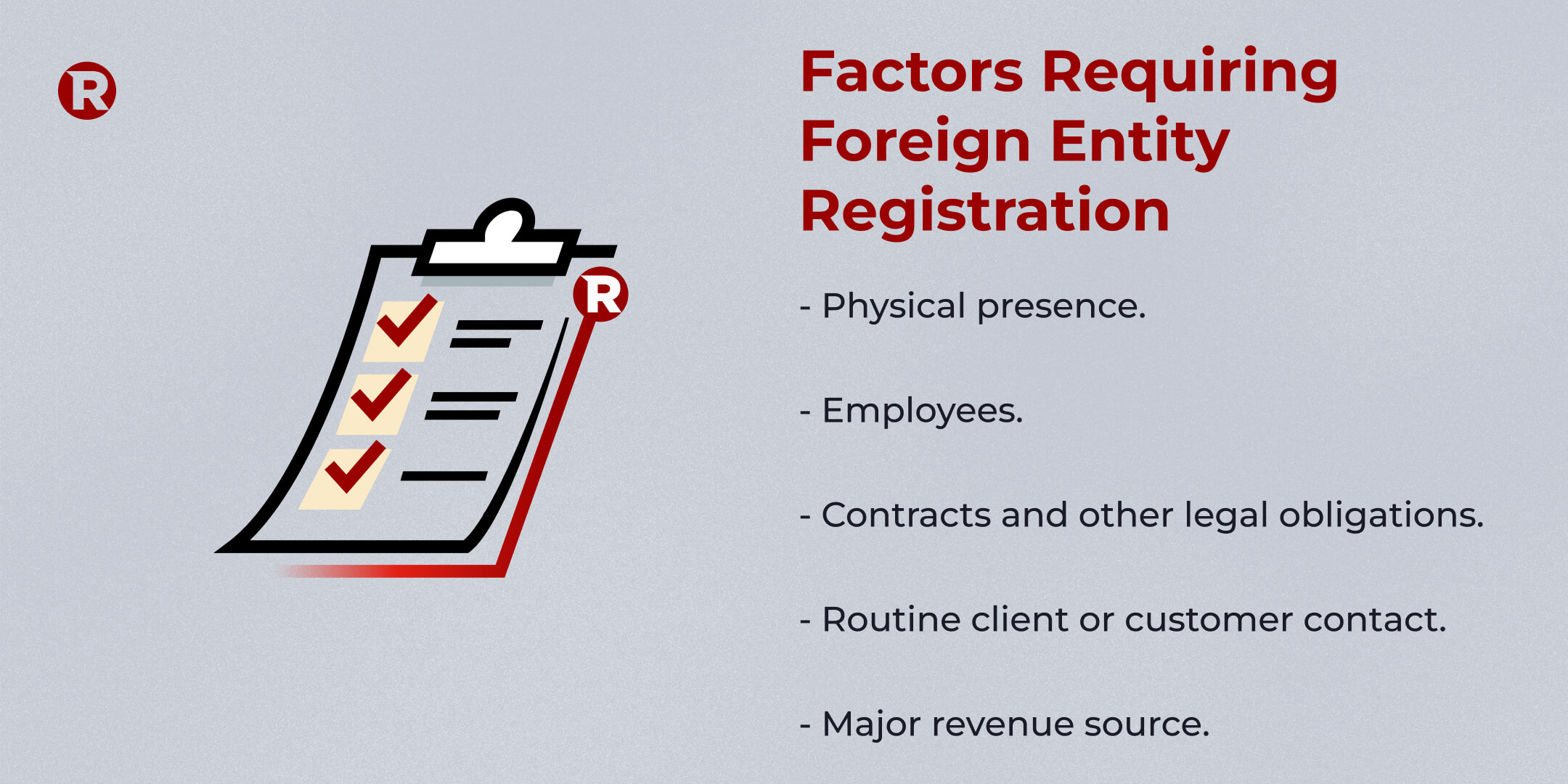 The following factors often require a business to register as a foreign entity: