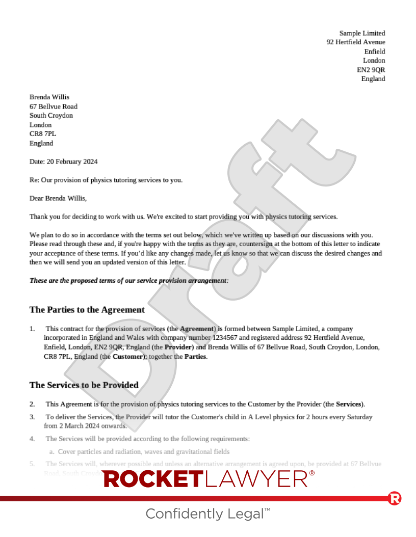 The Letter ends by providing a space for the recipient to sign the Letter, if they’re happy with the terms it contains, in order to make the contract legally binding.