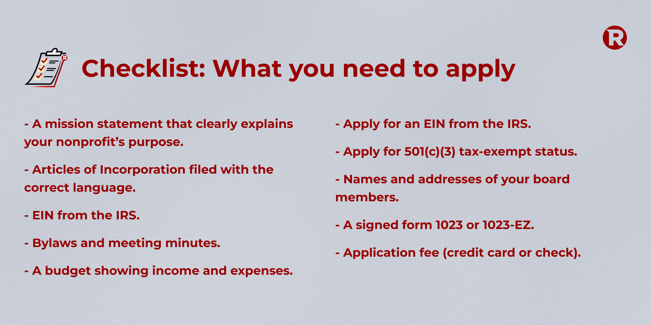 Checklist: What you need to apply for a 501(c)(3) tax-exempt status