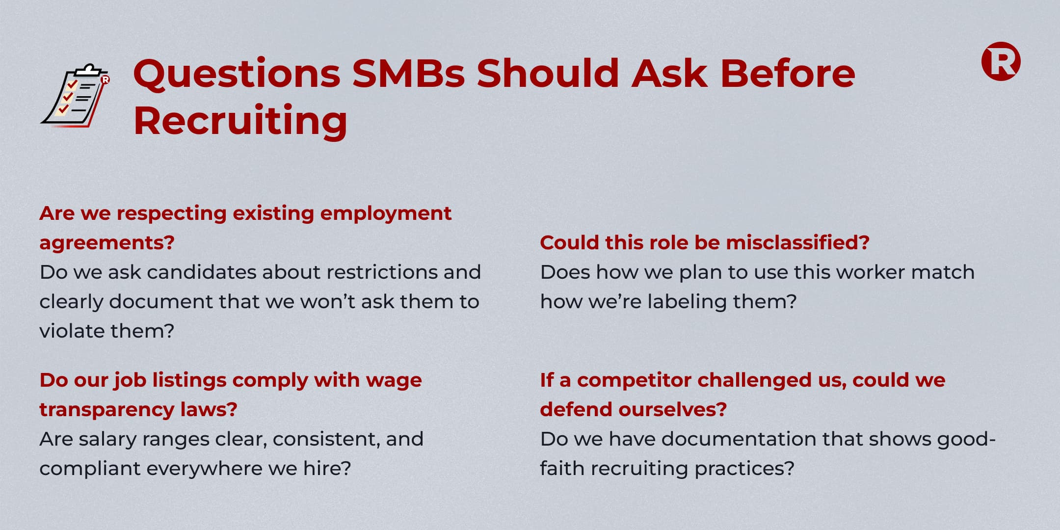 For SMBs, these disputes can be costly even if you ultimately win. Legal fees, injunctions, and damaged business relationships are real consequences of a hiring process that moves too fast.