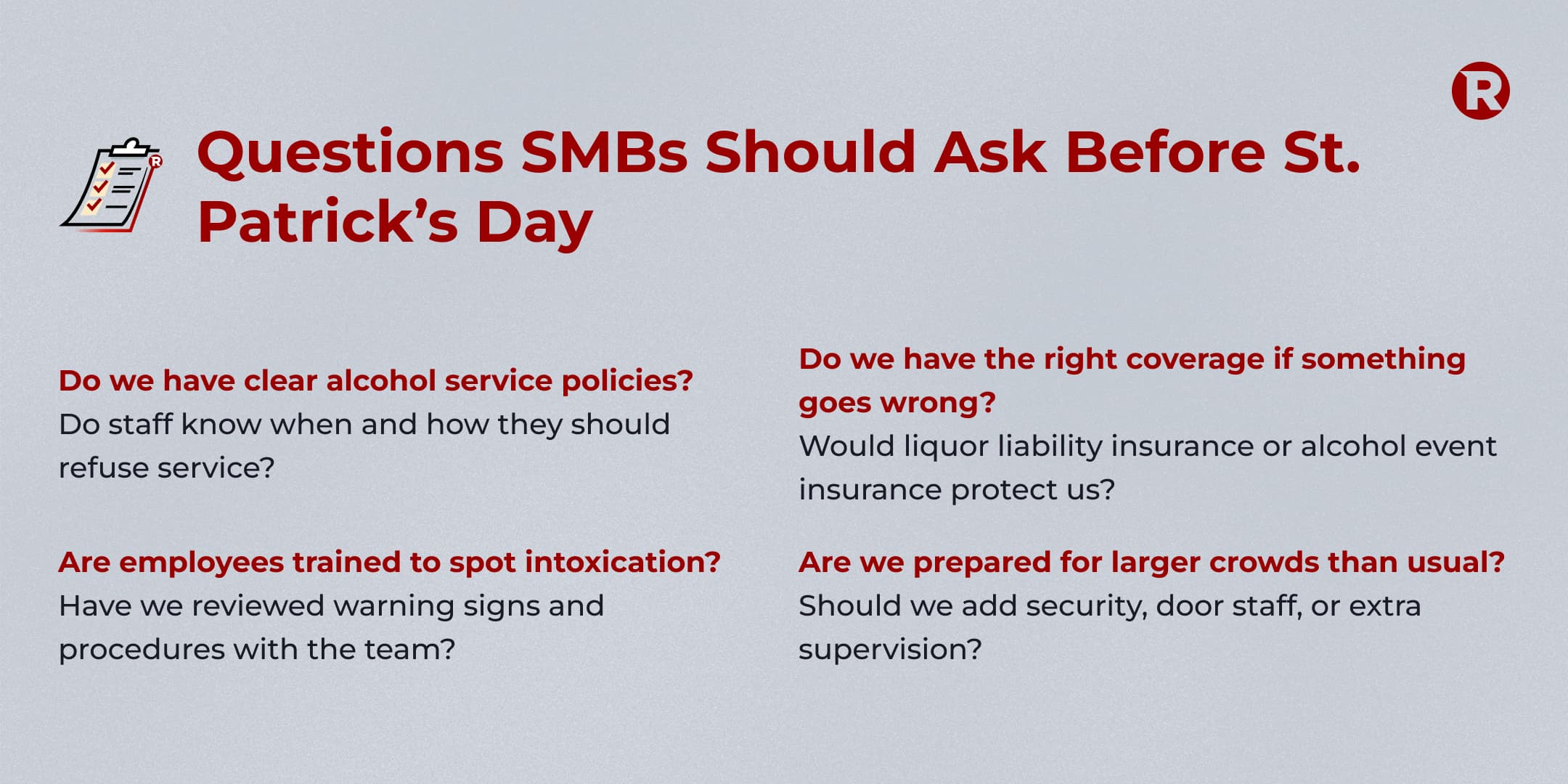 Small preparations today can prevent big headaches tomorrow. St. Patrick’s Day can be a great opportunity for your business. With clear policies and a prepared team, you can celebrate the holiday while keeping your staff, customers, and business protected.