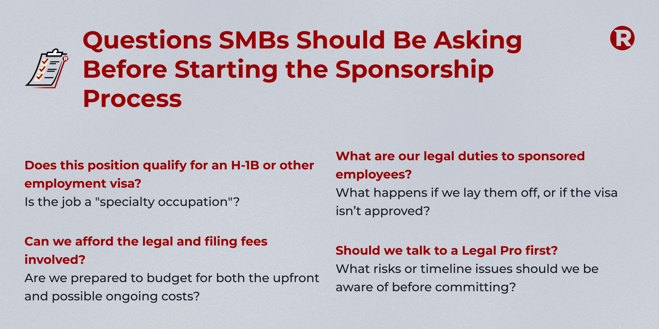 Sponsoring an employee for a visa like the H-1B or employment-based green card isn’t just a matter of filling out paperwork. It comes with financial, legal, and operational commitments. And for smaller businesses, the stakes can be higher if something goes wrong: whether it’s a missed deadline, a rejected petition, or a misunderstanding of your obligations as an employer.