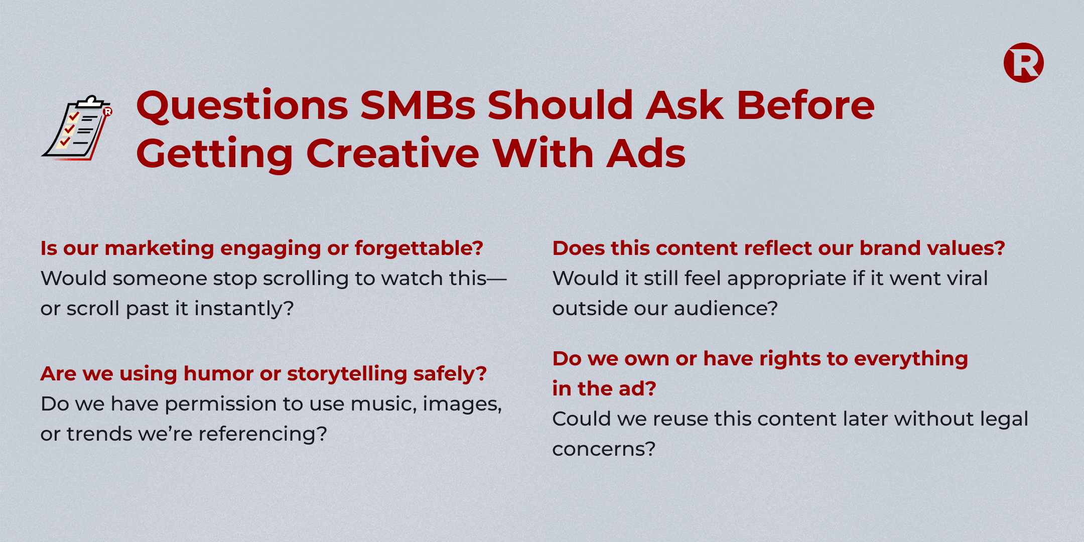 Before launching your next campaign, ask yourself a few key questions to balance creativity with protection: